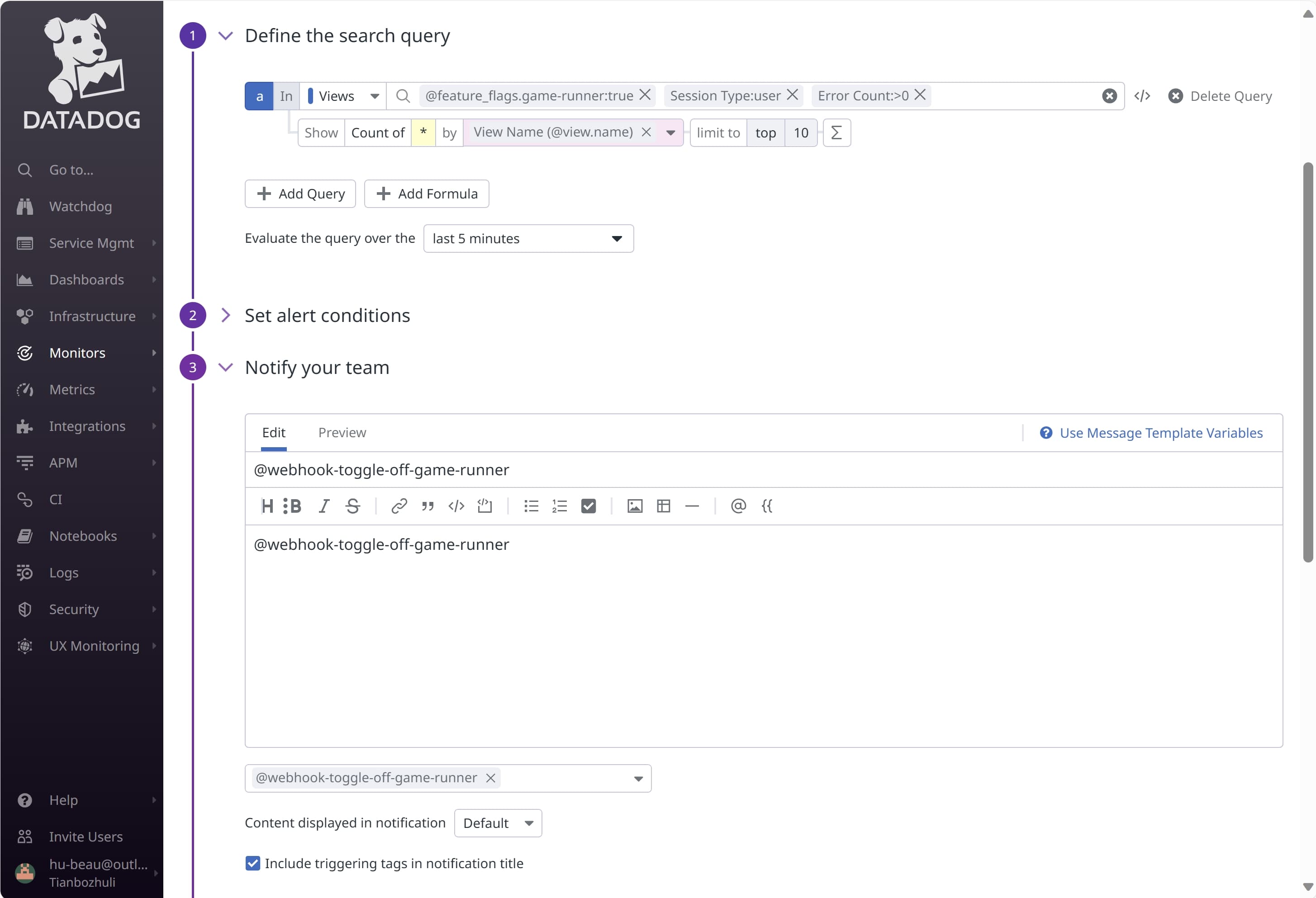 Using flag triggers with Datadog